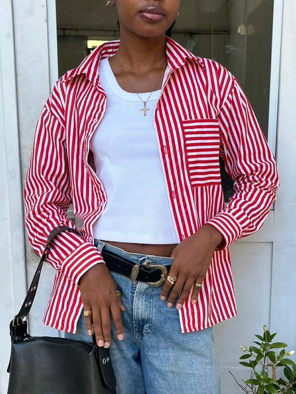 A Camisa MARESIA é uma camisa de manga longa perfeita para usar nesse verão. As peças listradas são um clássico que nunca morrem, super versatéis e adaptáveis a diferentes momentos. As listras são atemporais e atravessam todas as estações do ano, mas é agora no verão que as listras brilham. Uma camisa perfeita para usar como terceira peça e compor o seu look.